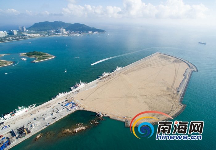 2016年5月30日,鳳凰島國(guó)際郵輪港二期陸域回填砂項(xiàng)目已經(jīng)完工,人工島已初具規(guī)模。
